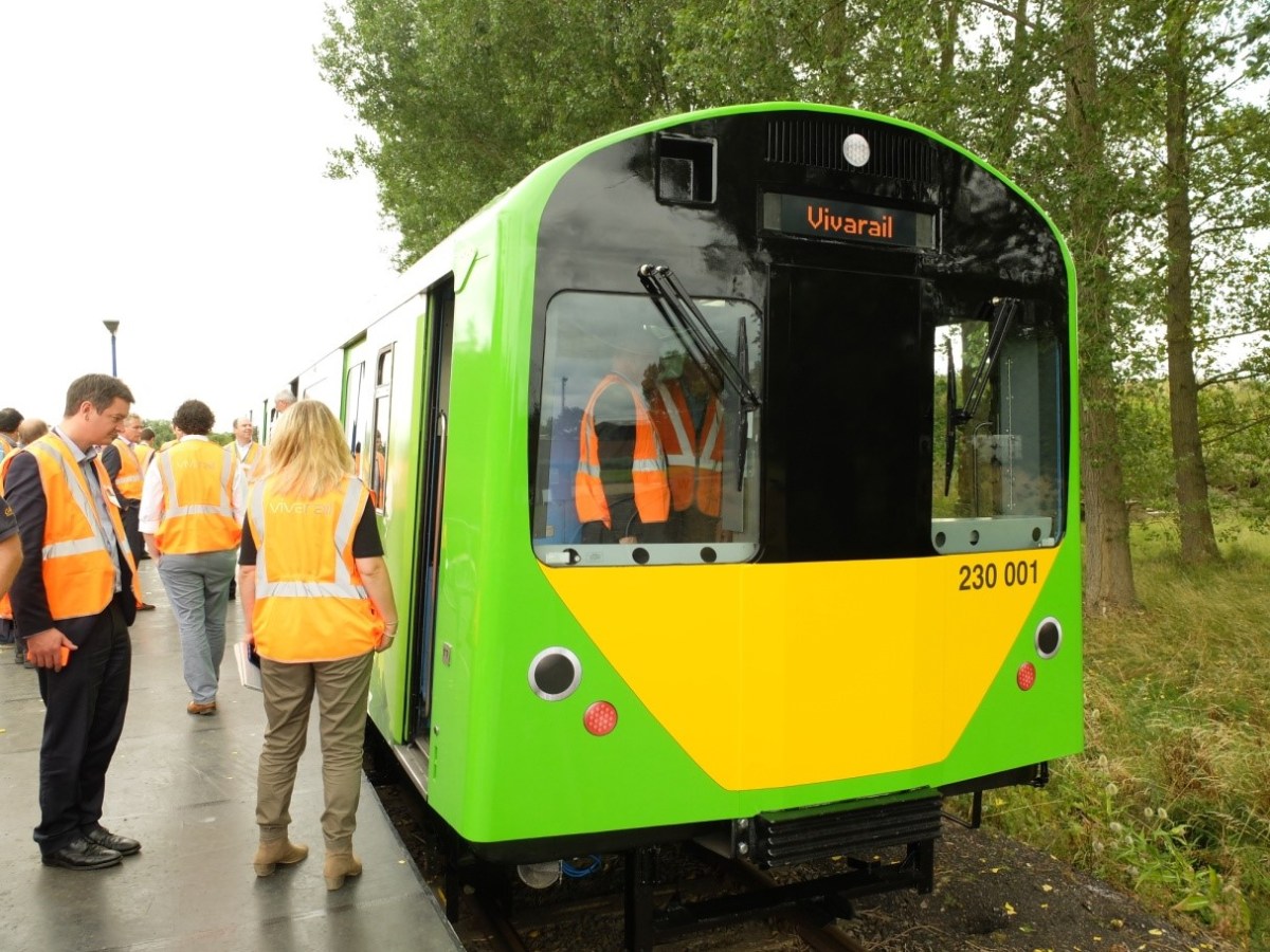 Pictured mid-August – the first Vivarail D-train carriage, converted from a decades-old “cast-off” London Underground car, ready for a trip round a Warwickshire test track. We couldn’t resist the chance to muck about on a “new” (?!) train and so joined an invited party of stakeholders to look at work in progress. Low-emission diesel engines have been fitted, and a new strengthened cab. Inside, it still felt very much like a London “Tube”, with District Line blue moquette replaced by a duller grey. There were mock-ups to look round of innovative modern interiors more suited to longer trips. It will be good to see these in service. The test-track demo was a pretty good ride at maximum speed of maybe 35mph (though we were advised to remain seated at one point). It could go at 60 in service. Faster than the usual 45 max on the District Line. Slower than a Pacer or Sprinter, but with better acceleration. Could the D-train replace Pacers in the North? Surely not. The bidders for the Northern franchise have made such decisions by now and the D-train is some months away from useful evaluation. A 3-car prototype should enter service on the Plymouth-Gunnislake branch next Spring. Scenic branch lines in the South West of England or elsewhere could just suit this train, with its good views out of the window hopefully improved by upgraded seating. Overall it’s a laudable re-engineering of a train that is too good to just throw away.