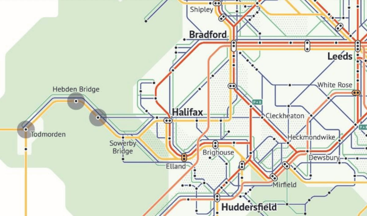 Network North proposed a 30 minute timing Bradford-Manchester. And yes, it does seem optimistic. Business case must be dubious if it’s a new line for only 2 trains an hour. Better surely to upgrade the Calder Valley line and aim initially for a half-hourly fast service. This might take as little as 42 minutes Bradford-Manchester and would also serve Halifax and Rochdale. Complementary services in between would serve intermediate stations. Track -and capacity – interventions are pencilled by the WYCA strategy over the Sowerby Bridge to Rochdale section.