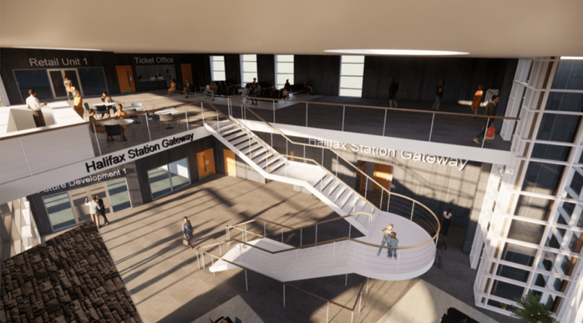 Exciting plans! Latest version of Halifax station gateway proposals are on-line, including iconic new pedestrian bridge linking with town and bus stops, car park at ground level and brand-new 2-storey containing shops and café. Slightly worryingly the ticket office is now shown on the ground floor, though pedestrians arriving over the new bridge will access the station at first floor level.